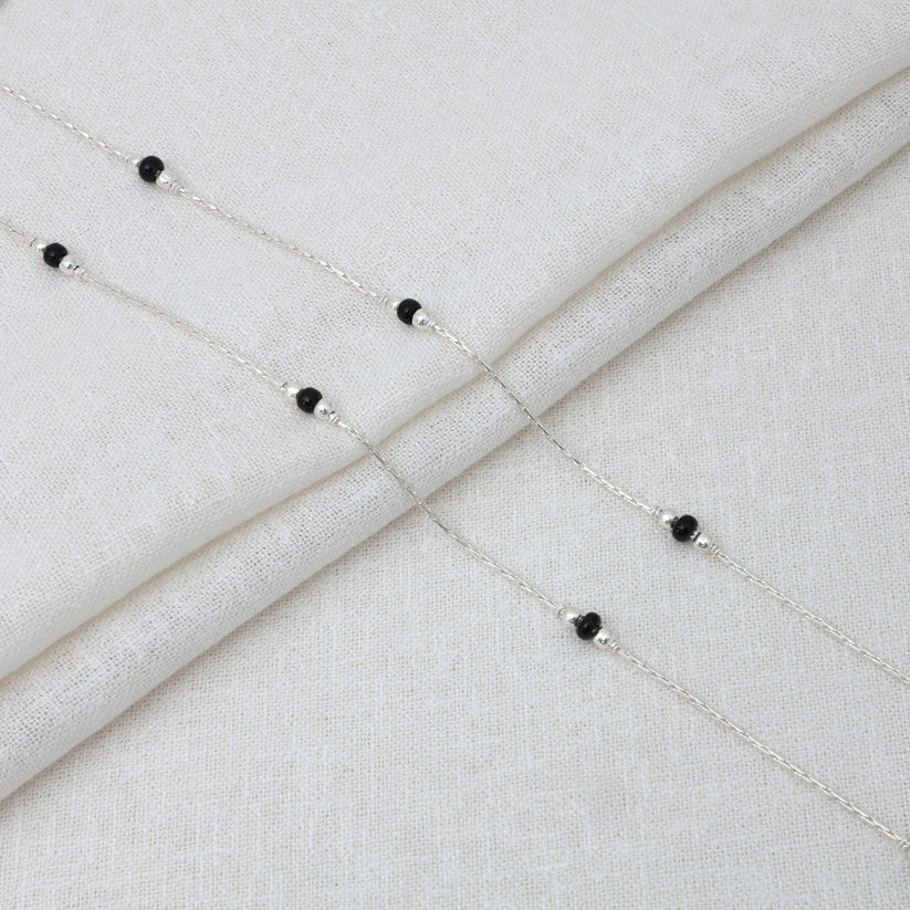 Crafted from high-quality silver, this Everyday Wear Black Bud Silver Anklet combines durability with elegant simplicity. Its delicate black bud design adds a subtle yet distinctive touch, making it perfect for daily wear. Lightweight and comfortable, it complements any outfit while maintaining a refined look suitable for both casual and formal occasions.